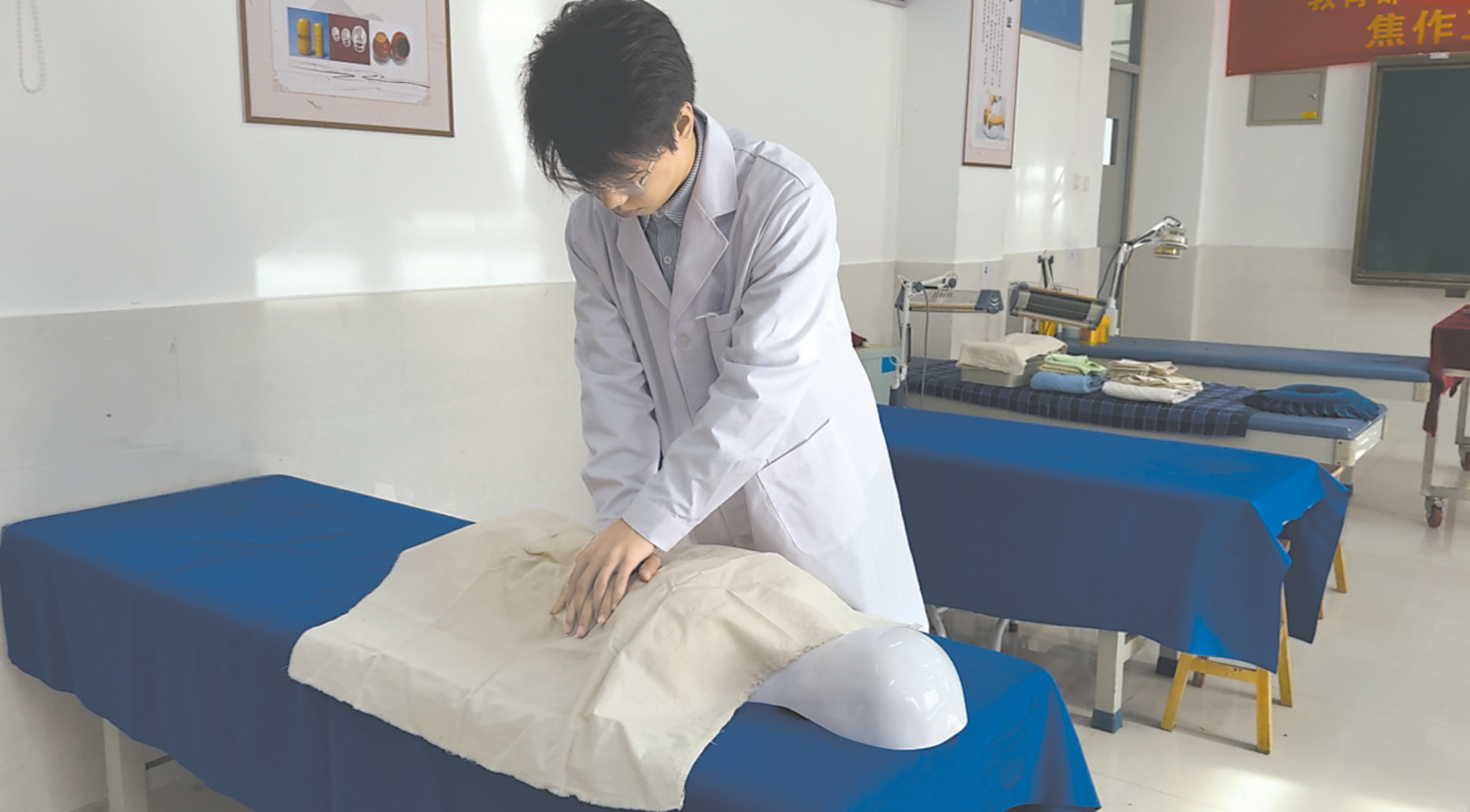 赛场上,选手们沉着冷静、从容应战:理论考试中,精准作答,画经点穴时定位准确,罐法灸法操作规范娴熟,推拿技术力道恰到好处。原本内向腼腆的杨可凡,在训练中不断突破自我,从不敢与老师直视、缺乏自信,成长为从容面对考官的阳光少年。“这离不开老师的悉心指导、家人的支持和团队的默契配合。”杨可凡说。