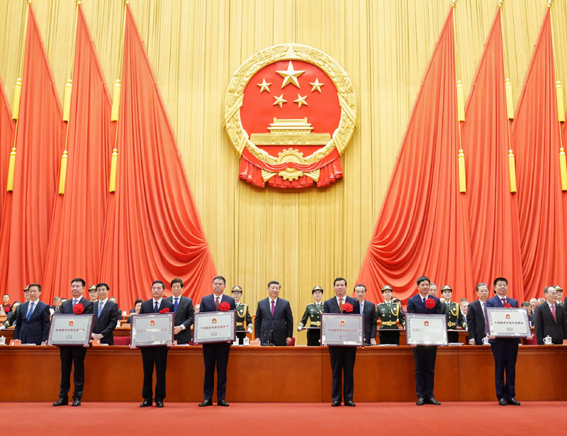 李克强主持大会,汪洋宣读表彰决定,栗战书、王沪宁、赵乐际、韩正、王岐山出席。