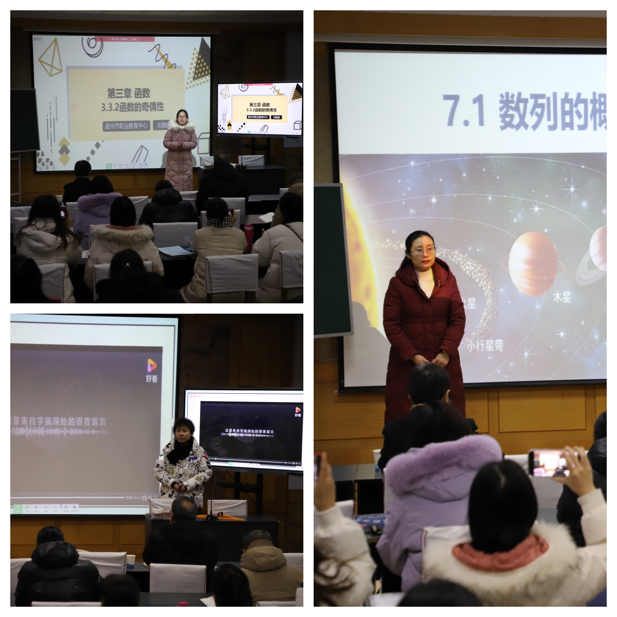孟州市职业教育中心的刘路路老师、焦作市职业技术学校的秦海燕老师、焦作卫生医药学校的冯瑛老师分别进行了观摩课展示,三位老师将课程思政元素有效融入课堂教学之中,使学生体会了到数学带来的智慧和自信。
