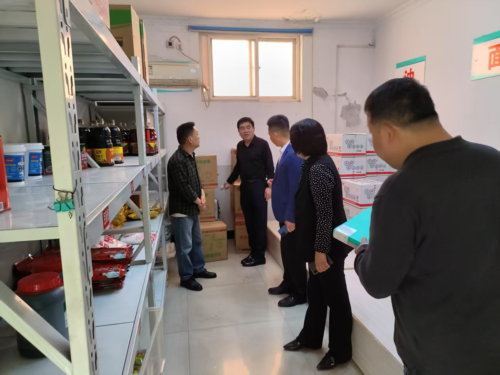 检查组依次对食品储存仓库、后厨操作间、餐具消毒间、留样室、烹饪间等重点区域进行了细致查看。在食品储存仓库,校领导仔细检查了各类食材的存放情况,查看了食材的进货日期、保质期及储存条件,要求务必保证食材新鲜,杜绝过期变质食品流入校园;于后厨操作间,着重对生熟食品的分开加工、存放以及加工流程规范进行了检查,强调严格遵守操作规范,防止交叉污染。