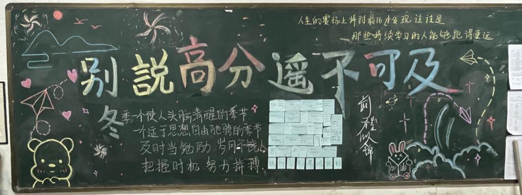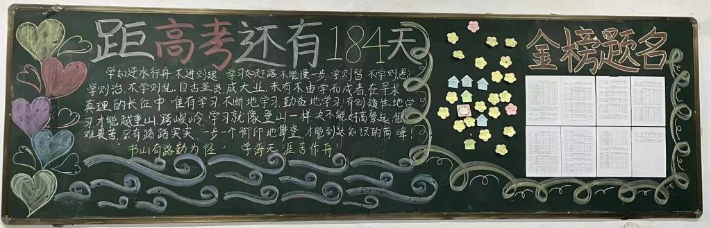 活动中,所有班主任认真布置、有效组织,所有班级学生积极行动、各展才能,在班级后黑板绘画高考冲刺黑板报、粘贴或书写各自的心愿卡片,这既凸显出了班级特色,也展现出了学生风采。在“心愿墙”上,既有班主任对优秀学生的鼓励,也有学生们对未来的畅想、憧憬;既有教师对学生的殷切希望,也有同学们对大学的美好向往。