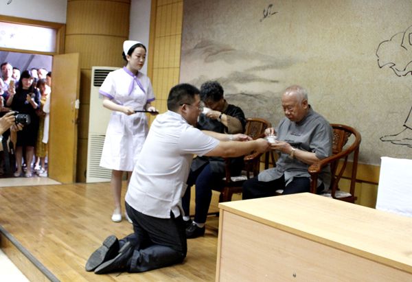 会上,党委书记浮新平向周德安、程海英两位名老中医颁发“焦作卫生医药学校名誉教授”聘书。在热烈的掌声中,周德安教授和浮新平书记共同为“名医传承工作室”揭牌。中专部副主任殷建峰致辞,市政协副主席、市卫生计生委副主任孔祥群主任发表讲话。 “名医传承工作室”的成立,将有利于国医大师学术思想和实践经验向基层普及和推广。