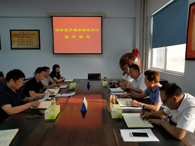 为了全面提高领导干部学法守法用法,依法决策、依法行政、依法管理的能力和水平。9月11日,领导班子成员在会议室对学法守法用法进行学习。