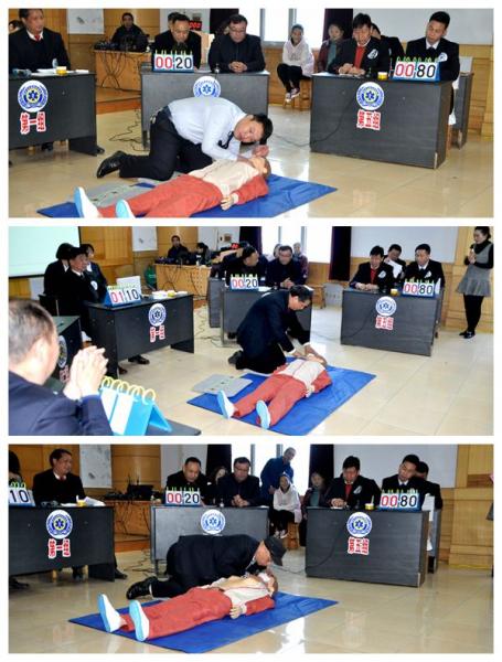 本期比赛是第一次以全体领导班子成员和全体中层干部为队员的比赛,是第一次以急救培训为项目的比赛,吸引了全体教职工的广为关注。比赛设置了必答题,抢答题,风险题和操作题四个环节,难度步步提升。选手们沉着冷静、配合默契,回答问题准确,急救措施到位,操作流程规范,台下观众积极互动,参与热情高涨。整个比赛紧张有序,气氛热烈。评审团现场打分,并对选手们回答不准确或有争议的问题进行了分析解答。