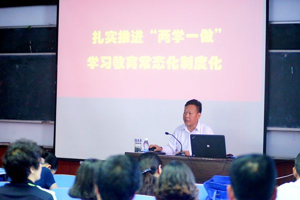 会后,党委书记浮新平为全体党员干部上了题为《扎实推进“两学一做”学习教育常态化制度化》的党课。(摄影:李 军)