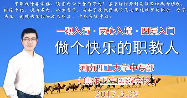 3月28日下午,全国德育专家、湖州工程技师学院创新办公室主任邹六根教授应邀来到医学中专部,做了题为《做个快乐的职教人》专题讲座。中专部全体教职员工现场聆听了邹教授的讲座。