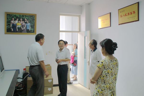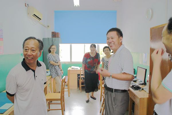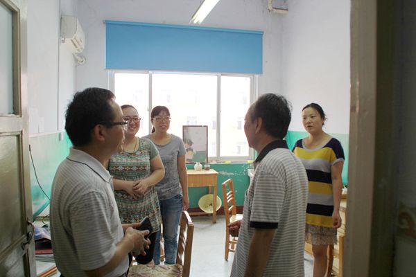 2014年8月23日,是新学期教职工报到第一天。我校党委书记张生华,党委副书记杨材升,副校长江长顺,纪检书记、工会主席刘新生,副校长沈军生,副校长时洋赴各职能处室和教研室,看望慰问教职工,检查指导开学有关工作。校领导每到一处,与教职工亲切交谈,令大家倍感温暖。暑假期间,学校进行了大量的装修,因此,本次走访过程中,校领导重点查看了校园校貌和教职工的办公环境。张生华书记对处室卫生、物品摆放、规范张贴各类通知和标识等方面提出了更高标准,并对一些处室办公桌椅、地面、墙面损坏的情况,立即责成有关部门进行处理。广大教职工对校领导的亲切关怀深表感谢,纷纷表示要继续以高昂饱满的热情、积极认真的态度,投入到新学期的各项工作之中。