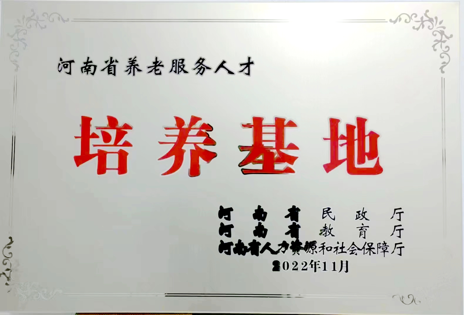 2022年底,河南省民政厅、河南省教育厅、河南省人力资源和社会厅联合印发《关于命名第一批省级养老服务人才培养基地和实训基地的通知》(豫民文【2022】345号),我校成为首批21家省级养老服务人才培养基地之一。