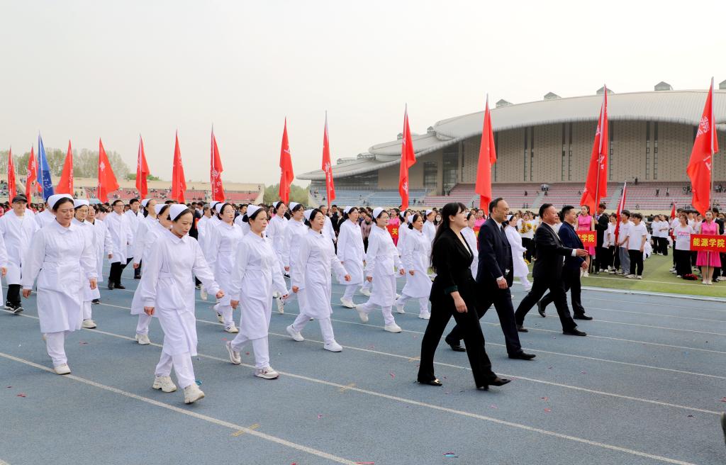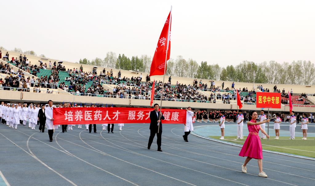4月13日上午,医学中专部教职工方队参加了学校2023年体育节暨运动会开幕式。这是后疫情时代中专部参加的首项校级大型赛事。