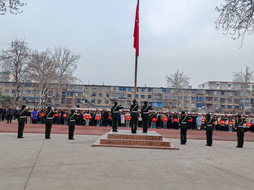 2月26日,我校在操场隆重举行新学期升国旗仪式。校领导班子和全体师生参加了升国旗仪式。升国旗仪式由学生科科长毋涛涛主持。