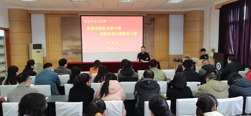 人勤春早功不负,齐心协力启新程。新的学期,为进一步提高认识,凝聚共识,提振士气,共谋发展,3月12日下午,党委书记尚显光以《如果没有机会做大事,那就怀着大爱做些小事》为题讲了一次专题党课。领导班子成员、党总支和党支部书记、全体中层干部和班主任、学管部门工作人员再次接受了专题培训。