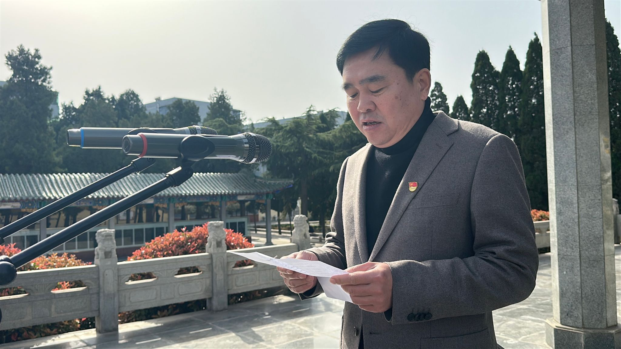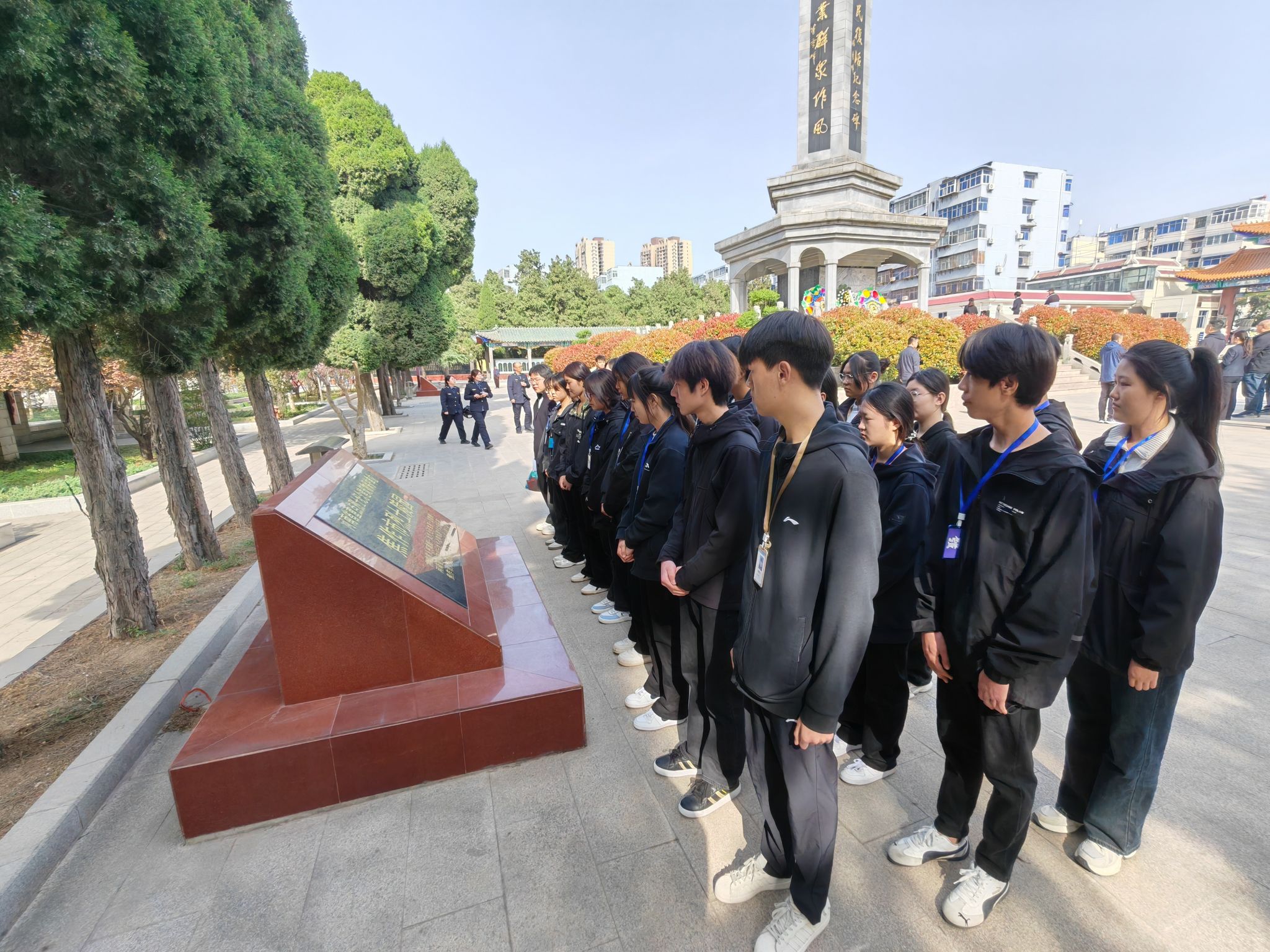 清明时节,为缅怀革命先烈,弘扬爱国精神。4月3日上午,我校学生管理党支部组织全体党员和学生代表来到焦作市烈士陵园,开展“清明祭奠英烈传承红色基因”主题教育活动,党委副书记葛中新带队参加,团委书记蔡永梅主持。