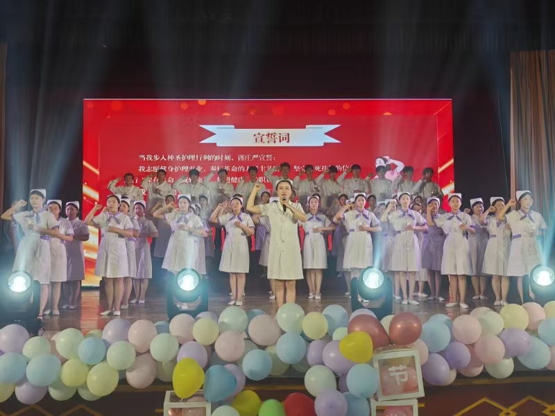 晚会以情景剧《生命之舞,爱之守护》开场。随后,特别邀请的护理专家们为护理生完成庄重的“授帽传光”仪式,通过燕尾帽佩戴和烛光传递环节传承职业精神。教职工表演了舞蹈《时代感》和诗朗诵《月光下的中国》,24级班主任集体献唱寄语学生。