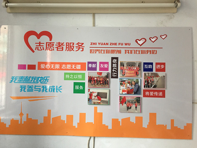 团委对志愿者服务站进行了整理和美化。将老化的柜子和桌子撤去,增大了服务站的活动空间;新增了读书角,让老师和学生在课间有个净化心灵的角落;新增了志愿活动照片墙,营造浓郁氛围;摆放了一些绿色植物,为服务站增添了生气。(供稿:蔡永梅)