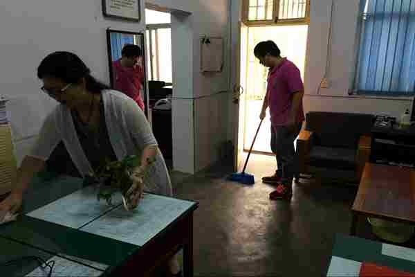 实习就业科积极响应学校精神文明创建活动,开展了卫生大扫除活动。在活动中,大家充分发扬不怕脏和累,带着饱满的情绪把科室卫生做到了桌面整洁,各类书籍、资料、报纸等及时整理归类,室内或走道无蜘蛛网、粉尘,门窗、桌(地)面等保持清洁明亮,玻璃镜面等无灰尘和痕迹,使办公室内外整齐有序。(供稿 :武宁)
