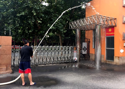 保卫科积极打扫卫生死角,冲洗学校大门,并积极查缺补漏,主动将其他科室遗漏的地方进行清理。(供稿:李巍)