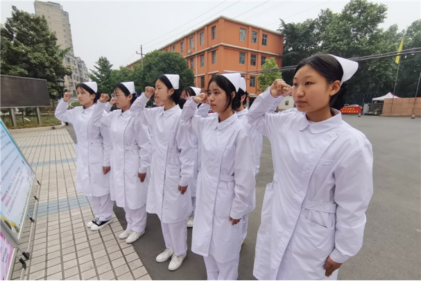为了进一步弘扬南丁格尔精神,树立职业道德新风,5月12日下午,医学中专部团委在教学楼前举行了庆祝“5.12”国际护士节集体宣誓活动。2020、2021级各班级学生代表参加了活动。