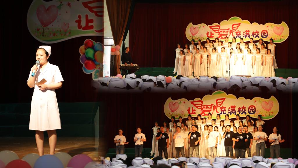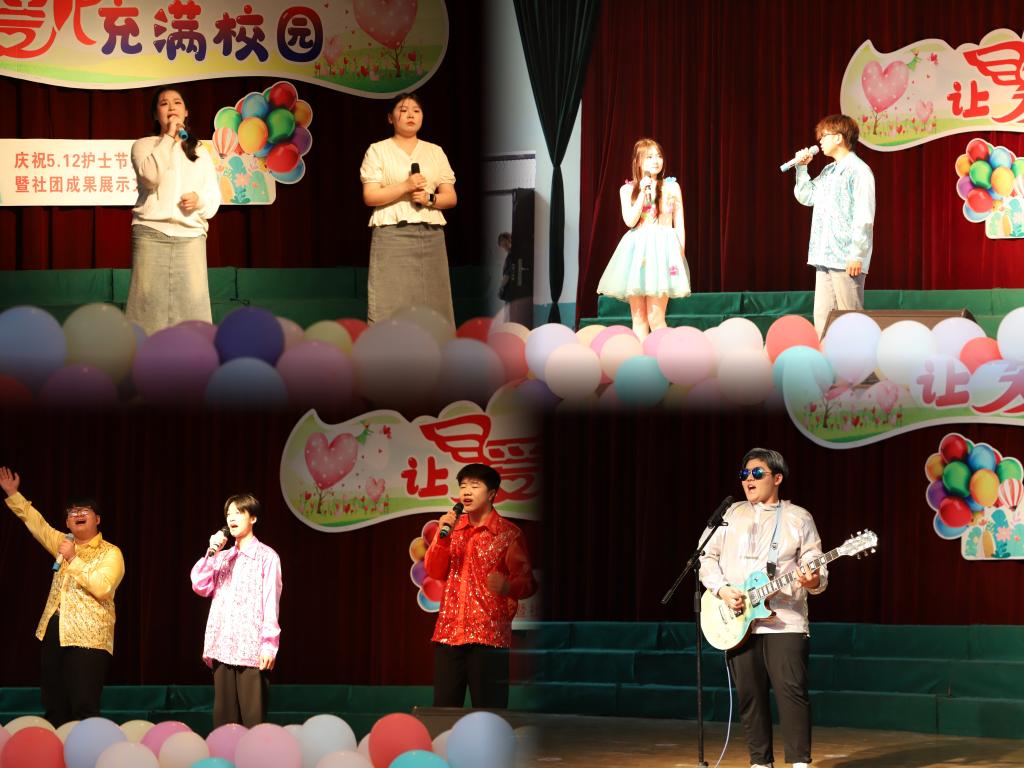 文艺演出在热情奔放的舞蹈《绽放》中拉开了序幕。紧接着声乐社团歌曲串烧《成都》《是妈妈是女儿》《爱》和吉他表演上场,精彩的演出得到了同学们的热烈掌声。朗诵社团带来的是朗诵《让爱充满校园》,6名同学动情的演讲展示了校园里师生间的大爱之情,感染了在场的全体师生。接下来校领导和护理教研室徐敏老师向所有同学们表达了节日的祝福以及殷切的寄语,把演出推向了高潮。22级美容班全体同学集体合唱《让世界充满爱》和老师们合唱《早安校园》《阳光总在风雨后》,让整场演出在热烈的氛围中落下了帷幕。