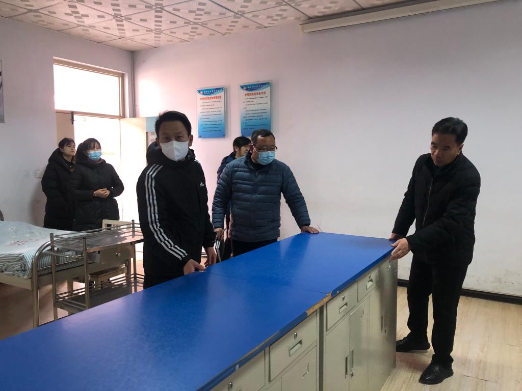 我校本学期将接受上级部门对学校标准化建设的检查验收,学校领导高度重视此项工作。近日,校长李培富、副校长王平及实训科、总务科相关人员一行,到学校护理楼、实验楼进行了实地视察,督导各实验室“迎检”的准备工作。