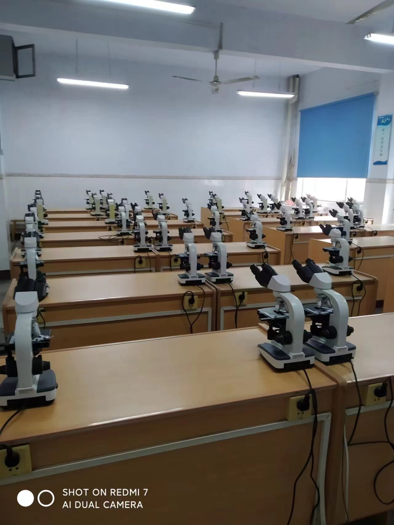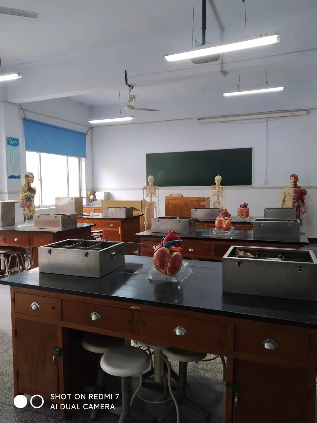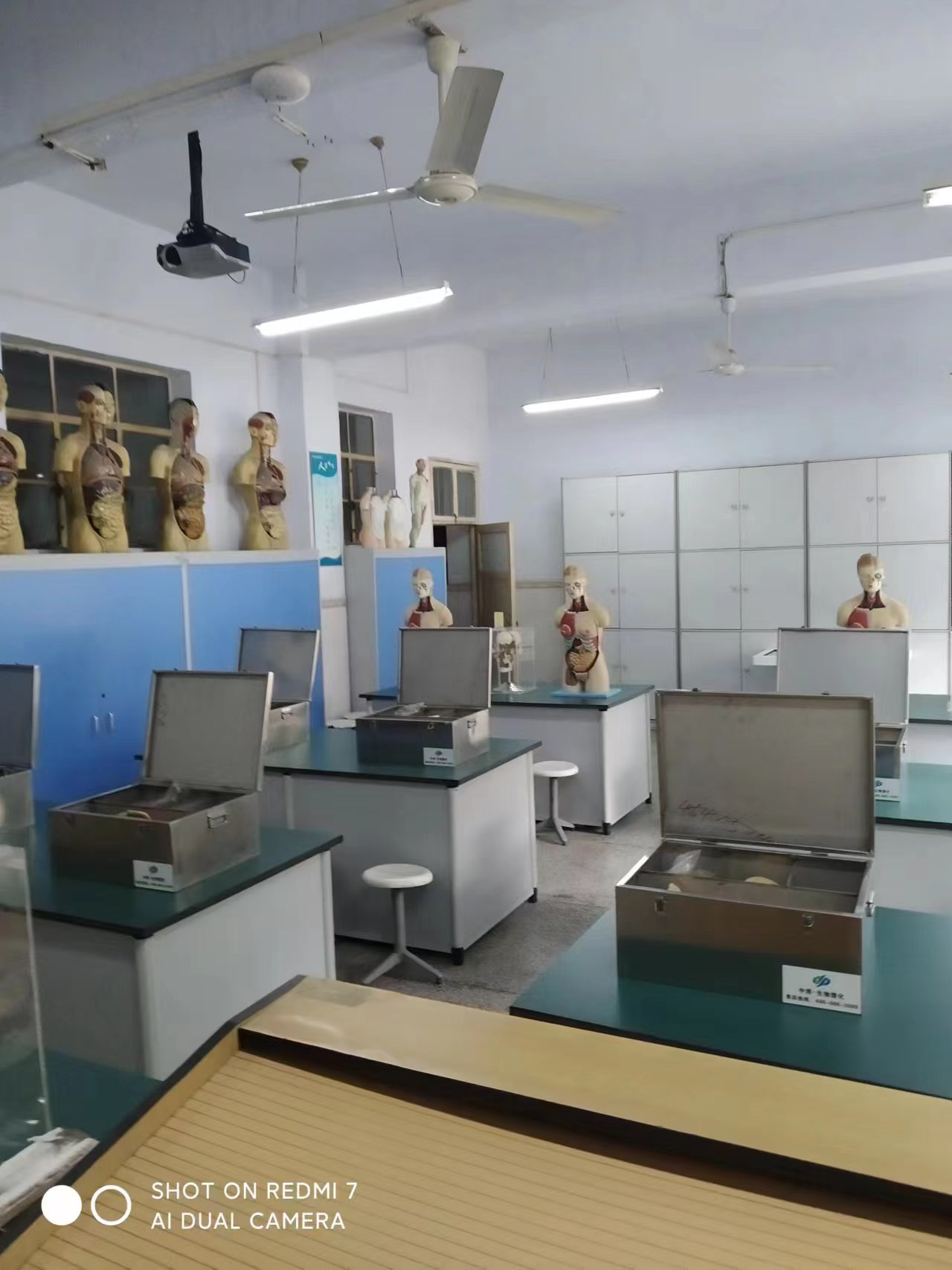 病理实验室由学生实验室和病理标本室组成,总面积约140平方米,配备有体视显微镜、病理尸体解剖台、乙种器械箱、丙种器械箱、光学显微镜等设备,设备总价值约25万余元。承担《病理学》等课程的实验教学任务。