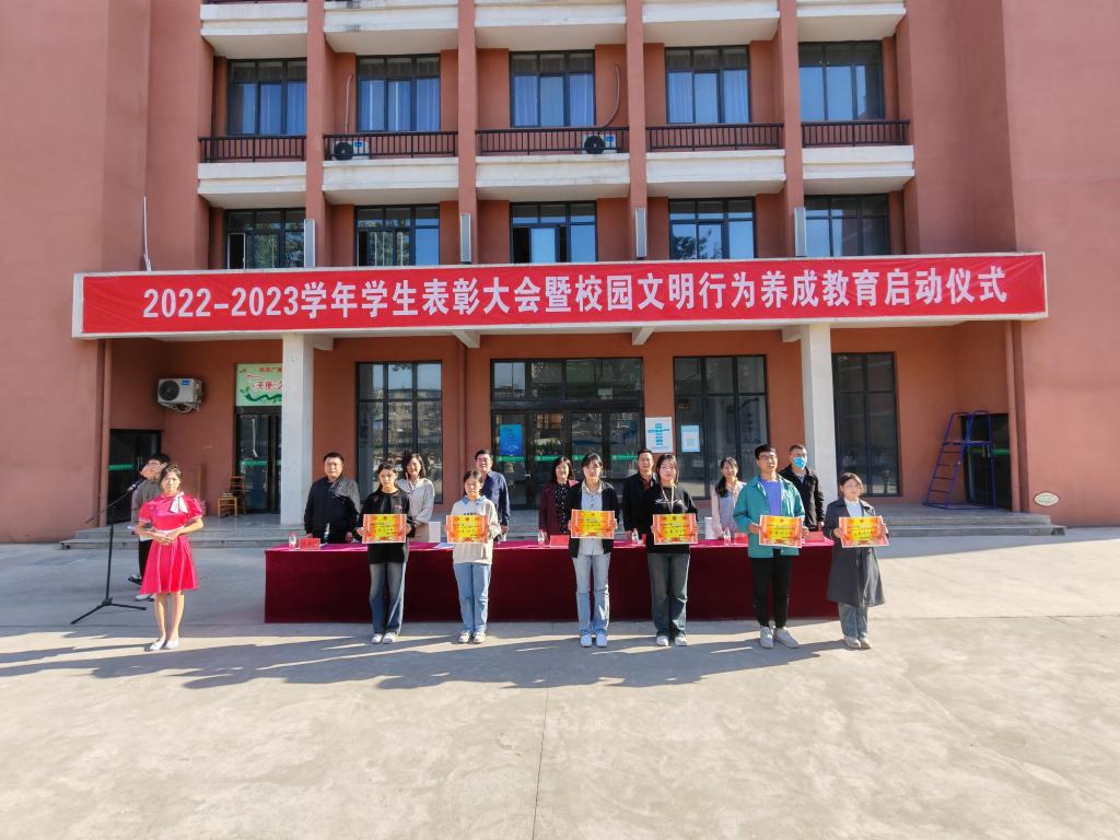 10月24日下午,2022—2023学年学生表彰大会在操场举行。校长王平、党委书记尚显光、副书记葛中新、副校长戴颜、王海娟、刘志强出席大会,全体学生及班主任参加此次表彰大会。会议由学生科科长毋涛涛主持。