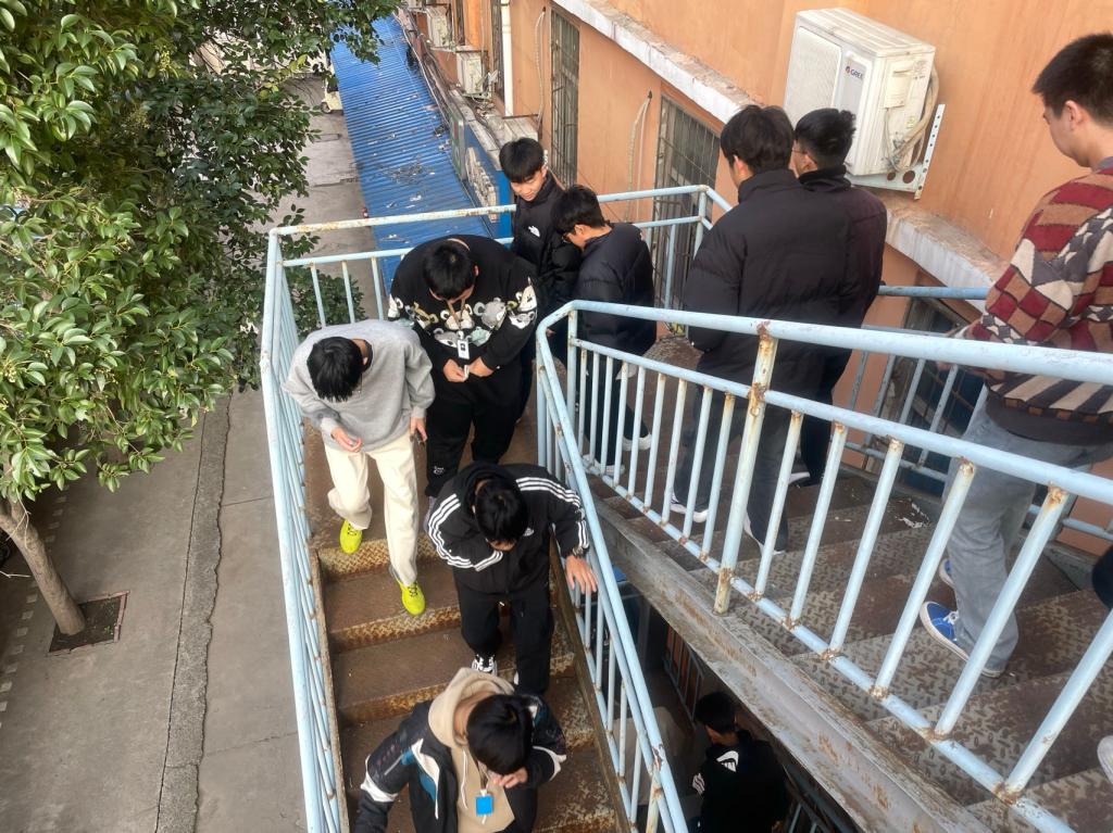 为组织好此次活动,学生科、保卫科成立了演练活动领导小组,并制定了《防灾应急演练方案》。11月7下午,随着警报声响起,各班主任及相关工作人员在各楼层、各楼梯口迅速就位,引导学生安全、快捷疏散,学生从宿舍楼按照预定疏散路线紧急撤离。短短几分钟,宿舍楼学生全部完成撤离。整个演练过程紧张而有序,学生在实践中学习,在体验中成长。