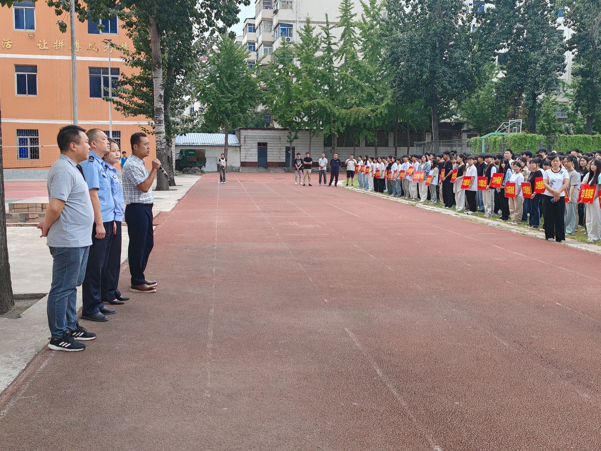 为进一步提升全校师生的安全意识与法治观念,9月3日下午,我校组织全体学生开展应急疏散演练活动暨法治讲座。党委副书记葛中新、民主派出所所长郜飞龙参加。