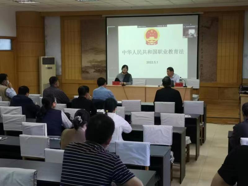 为深入学习新职业教育法,邀请市教育局赵国庆老师进行新职业教育法专题讲座。赵老师从新概念内涵、新定位地位、新管理体制、新体系框架、新办学层次、新办学主体、新证书制度、新保障体系、新协调发展、新法律责任等十个方面对新修法做了详细的解读,对社会关注的热点问题逐一阐述。通过讲座,全体教职工对新职教法有了更准确、更详细、更深刻的认识,为优化职业教育类型定位,深入推进育人方式、办学模式、管理体制、保障机制改革,培养更多高素质技术技能人才,保障职业教育新发展打下坚实基础。