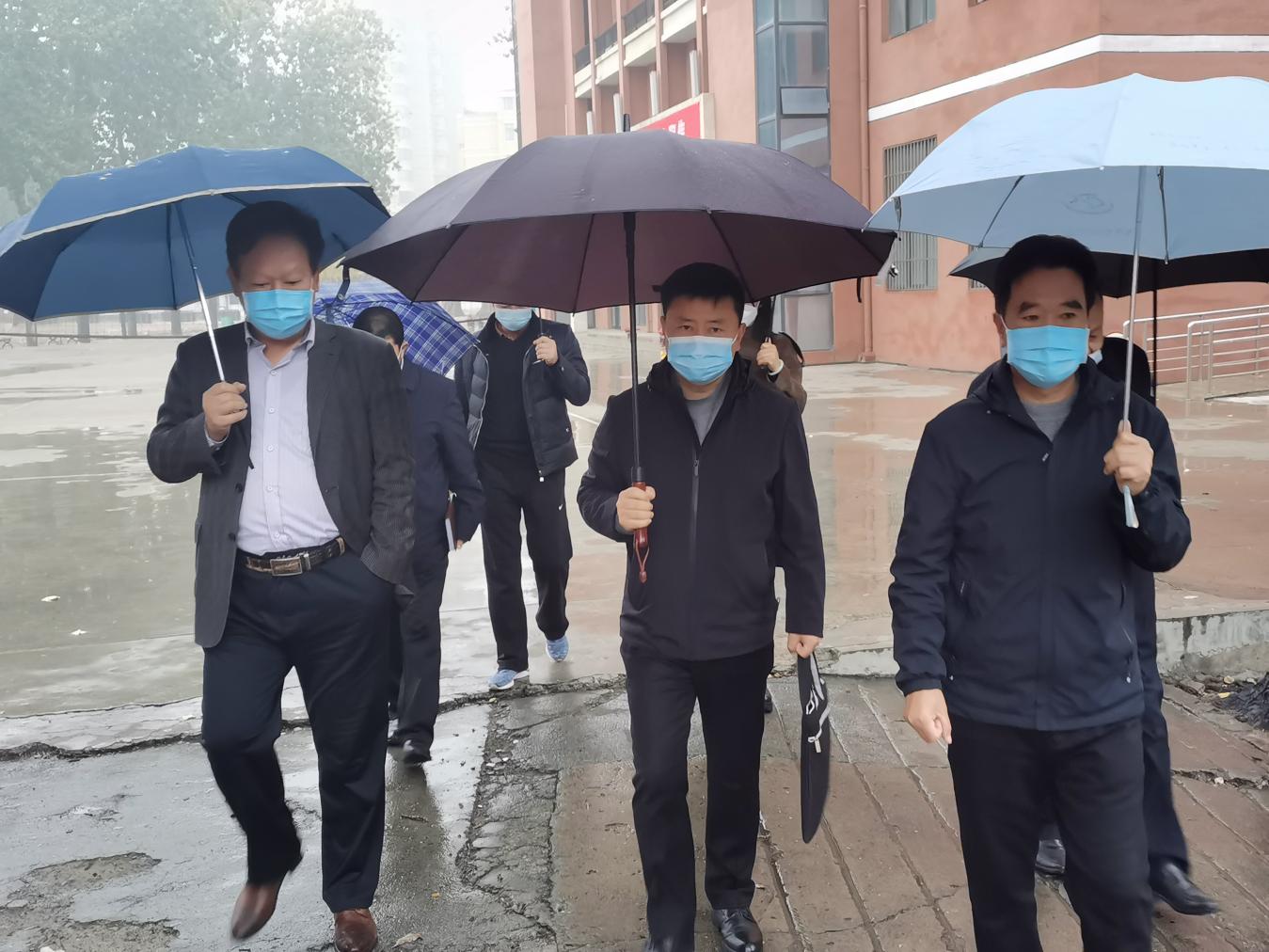近日,焦作市教育局副局长赵方一行莅校调研疫情防控工作。校长李培富、党委书记浮新平、党委副书记刘新生、副校长尚显光陪同调研。