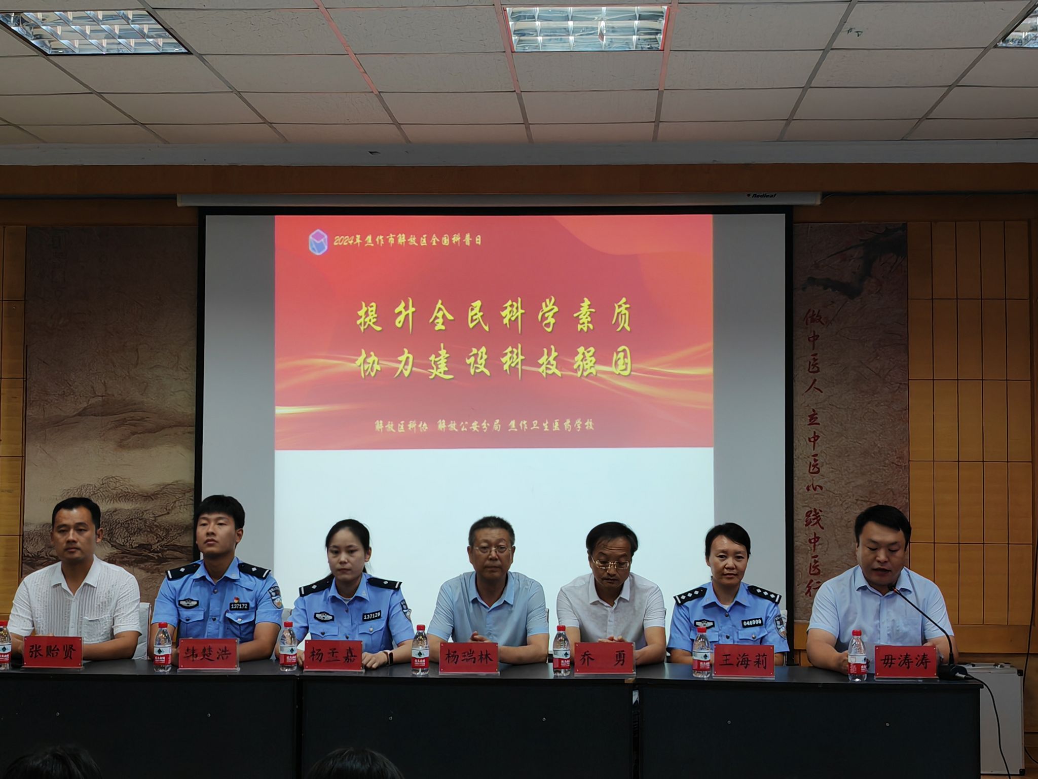 为进一步增强全体学生的安全防范意识,营造和谐、安全、有序的校园环境,9月10日下午,我校组织部分学生代表在学术报告厅开展以“提升全民科学素质,协力建设科技强国”为主题的系列科普宣讲活动。解放区科协主席杨瑞林、副主席乔勇参加,讲座由学生科科长毋涛涛主持。