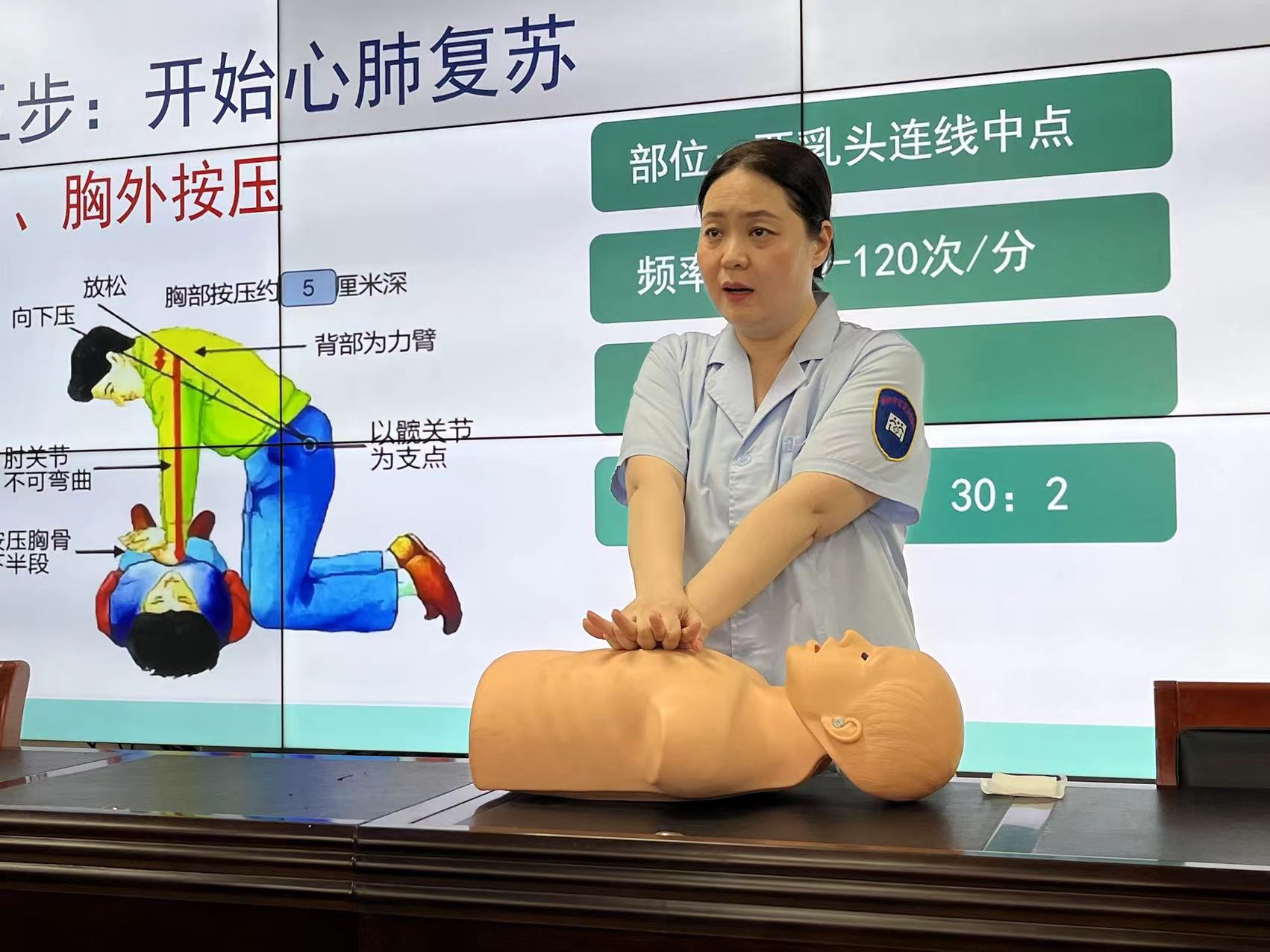 此次的心肺复苏培训共包含理论知识和实践操作两个部分。主讲人冯迎迎医生详细阐述了CPR的操作流程,包括如何呼叫急救电话、判断患者主观意识、口对口人工呼吸、正确胸外按压等。课后又让接受培训人员现场实践具体急救操作流程,受到了大家的热烈欢迎。