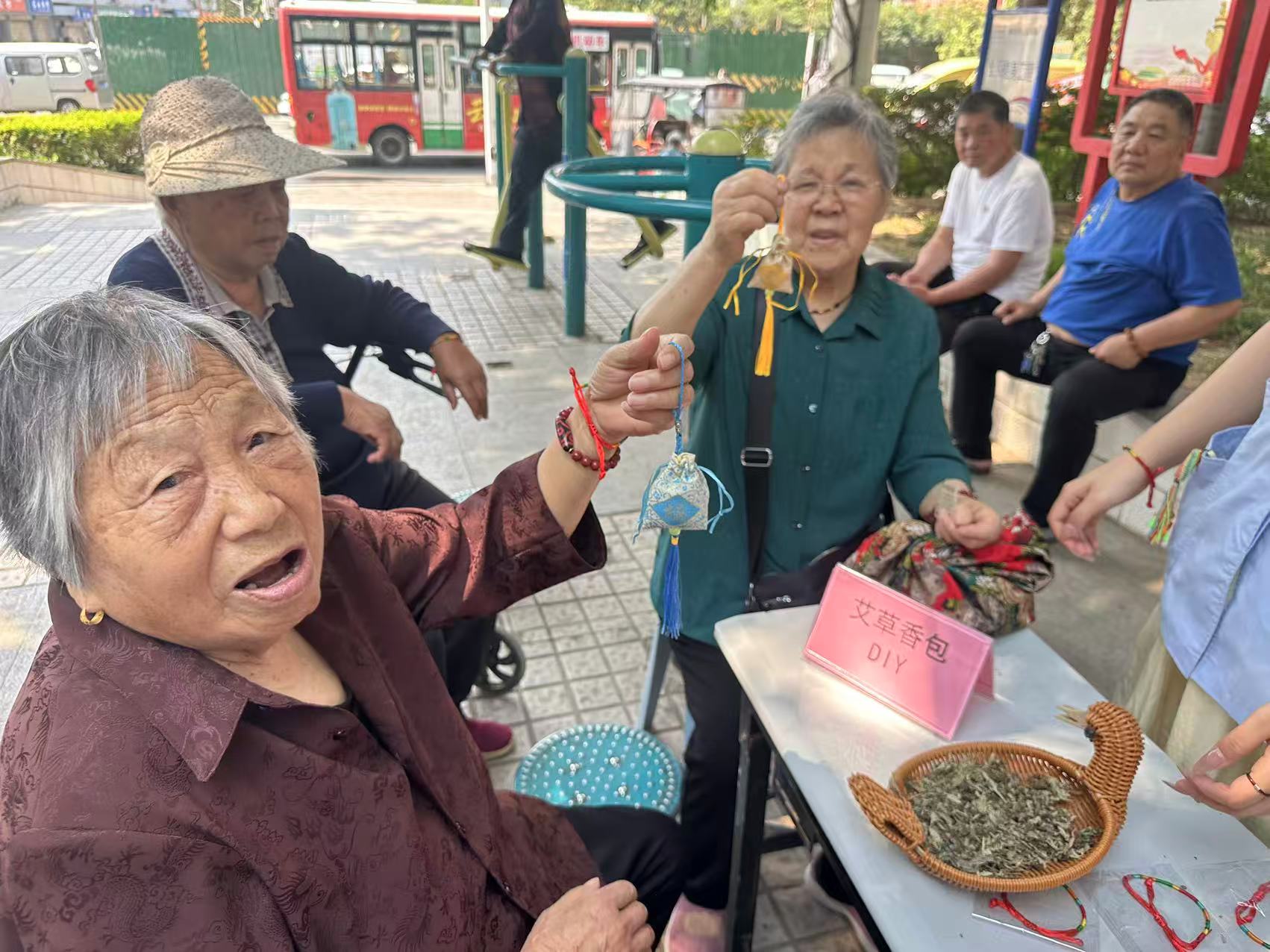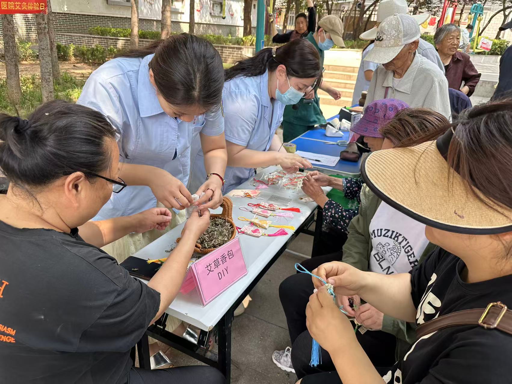 活动现场邀请中医专家现场讲解艾灸养生原理、适应症及注意事项 ,设立免费体验区,为居民提供肩颈、腰背等部位的艾灸服务,感受传统疗法功效,中医专家一对一指导,服务贴心,针对性解决居民健康问题。活动期间赠送艾草香包、五线彩绳等节日礼品,组织参与者DIY艾草挂饰,寓教于乐传递健康理念。居民踊跃参与,涵盖中老年、青年等多年龄段人群,现场互动氛围热烈。