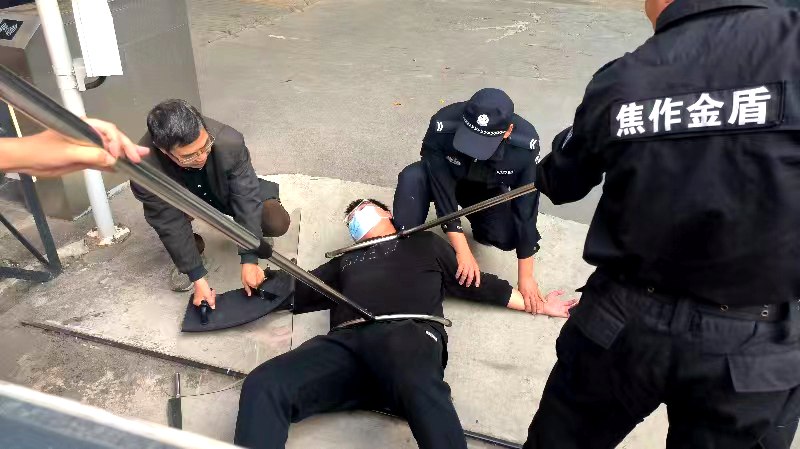 演练前,学校精心制定演练方案,并邀请民主派出所民警入校协助完成演练。民警首先对门岗人员进行了防暴培训,现场向校园安保人员讲解了钢叉、盾牌、警棍等器械装备的规范使用方法及遇到突发事件的一些应急处置办法和技能,同时教会保安人员如何辨别校园附近逗留的“可疑人员”,以及如何以最快速度制服“歹徒”的实施举措。