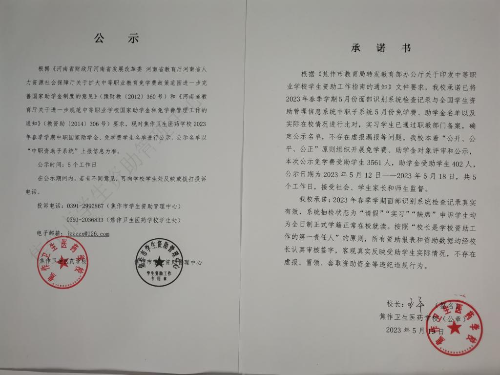 助学金、免学费公示
