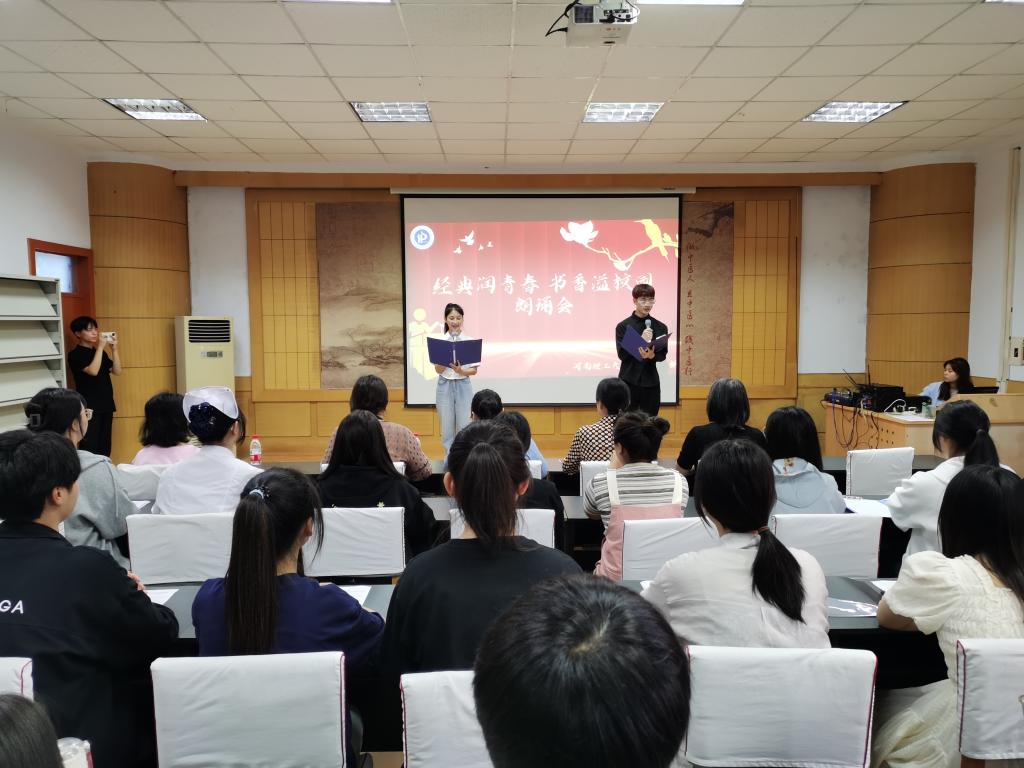 为营造书香校园良好氛围,让朗朗读书声萦绕校园的每一个角落,6月5日,由学生科主办,基础教学部、政语教研室承办的“经典润青春书香溢校园”朗诵会在图书电教楼学术报告厅举行,共有21组32名选手参加比赛。