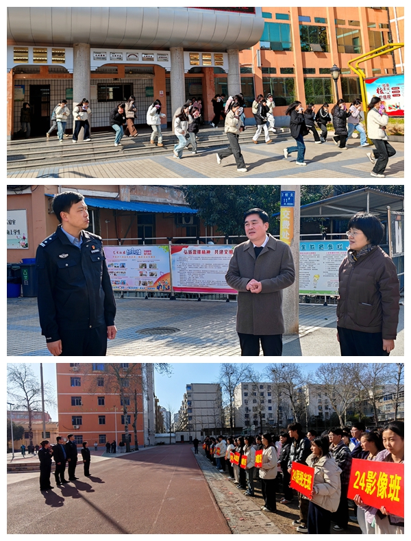 为增强师生安全和法治意识,提高应急自救和懂法守法能力,进一步筑牢校园安全防线。2月25日,我校在师生中组织开展了应急疏散演练和法治宣传教育专题活动。校长王平、党委副书记葛中新参加了活动。