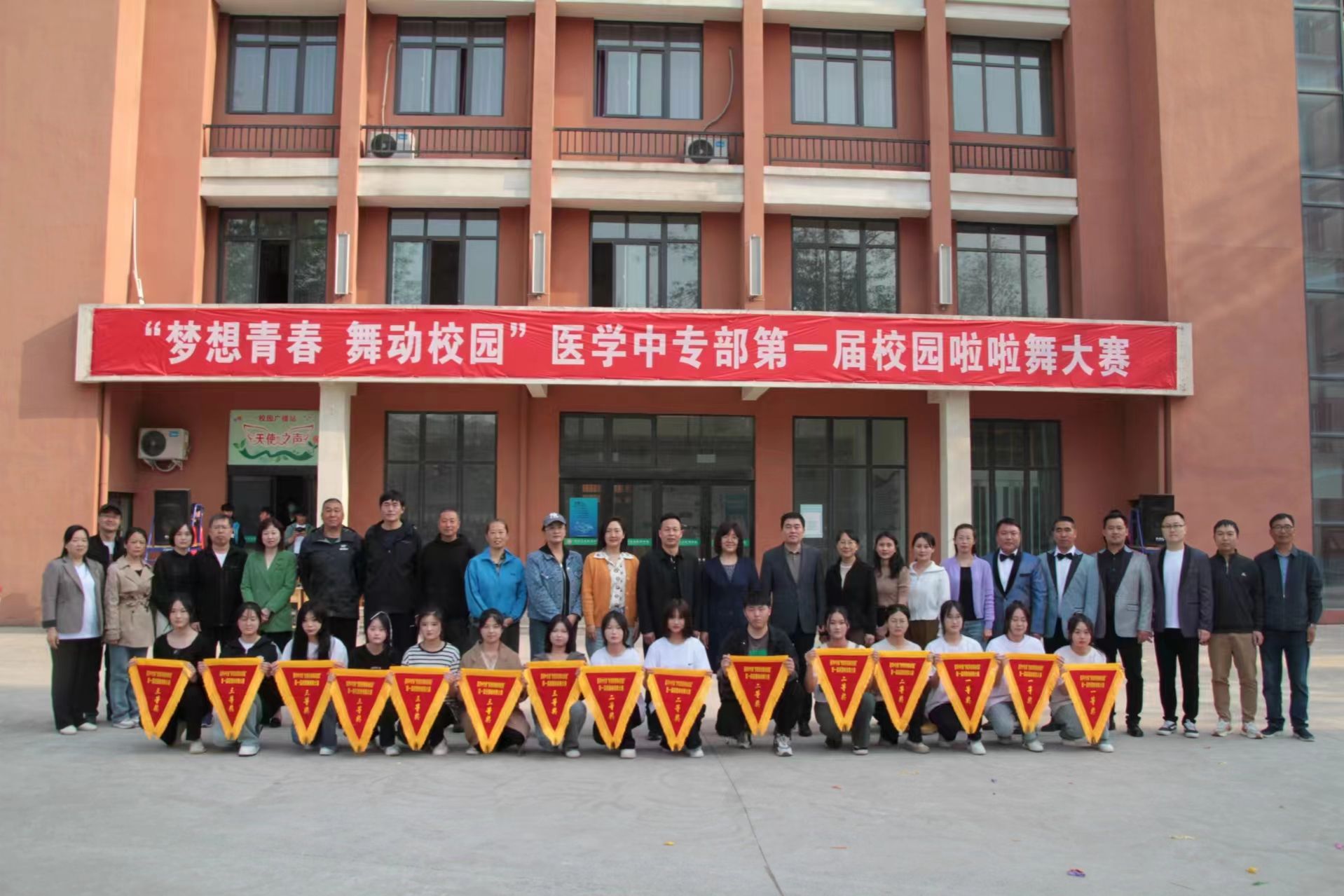 4月9日,一场洋溢着青春活力的啦啦操盛宴在医学中专部操场我校学子健康向上的精神风貌。