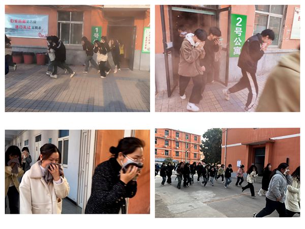 下午16点40分,随着消防警报响起,演练正式开始。工作人员迅速到达指定点位,全体教职工和学生按照预定疏散路线有序撤离出办公区域和宿舍公寓楼,手捂口鼻、低头弯腰,奔向操场集合点,并进行人数清点。