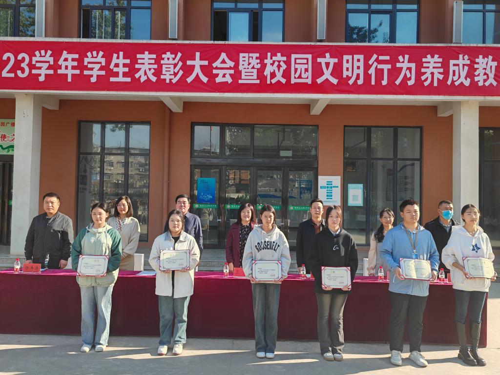 10月24日下午,2022—2023学年学生表彰大会在操场举行。校长王平、党委书记尚显光、副书记葛中新、副校长戴颜、王海娟、刘志强出席大会,全体学生及班主任参加此次表彰大会。会议由学生科科长毋涛涛主持。