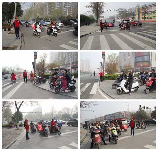 誓师大会结束后,志愿者们来到负责的路口执勤,宣传文明交通知识,用实际行动践行志愿服务精神。(摄影:刘倩倩)