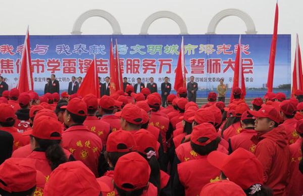 4月6日上午,我校志愿者服务队参加焦作市“我参与,我奉献,为文明城市添光彩”学雷锋志愿服务万人誓师大会。