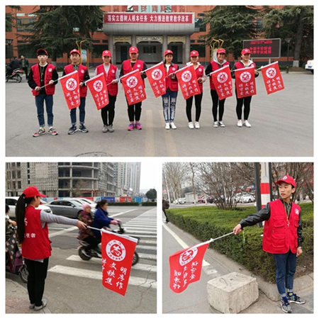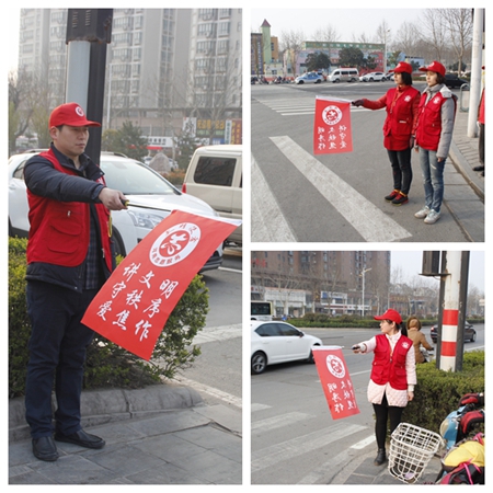 为大力弘扬志愿服务精神,优化城市交通秩序和市容环境,提升城市文明程度,确保全国文明城市提名城市创建成功。3月17日早晚行车高峰时间,我校志愿者在人民中学和王府井两个十字路口,参加了焦作市“文明使者”志愿服务行动。