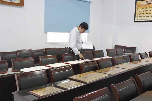 9月14日,市文明办副主任王保杰一行到学校进行省级文明单位年度验收,党委书记张生华、常务副主任杨材升、党委副书记刘新生陪同检查。