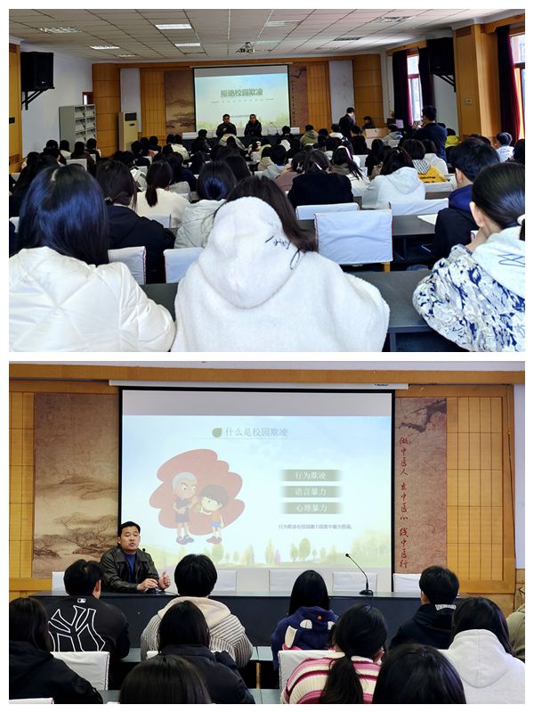 为进一步加强校园安全工作,切实保护学生的生命安全和身心健康,3月11日保卫科开展了校园防欺凌专题讲座,该讲座旨在帮助学生、提升防欺凌意识,增强对校园欺凌行为的识别和预防能力,共同打造一个和谐、友好、安全的校园环境,学生会成员、各班干部参加了培训。