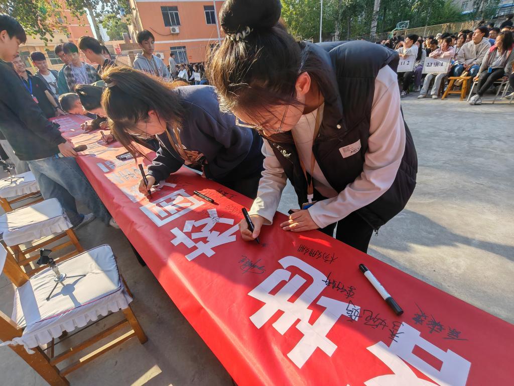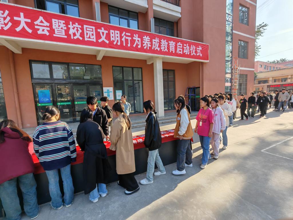 启动仪式现场,学生科科长毋涛涛向同学们做了文明行为养成教育活动动员,对具体工作进行了部署。随后,各班级学生代表在现场开展“文明公约”签名活动。