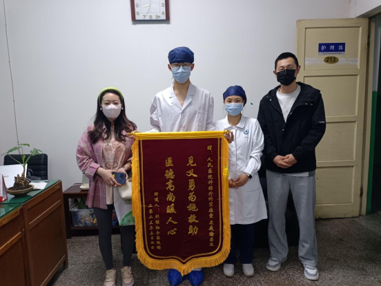 对于这次的行为,老人家属非常感激,特地送来一面锦旗表达感谢之情。事后家属很感动地说:一个陌生人,毫无血缘关系却能亲力亲为的一直陪到检查结束,作为亲生子女却没能陪伴在身边。这种精神值得赞扬,这种行为值得推广。康庭瑜同学表示,他只是尽自己最大的努力去帮助有需要的人,而获得家属的认可和感激是对他最大的鼓励。作为一名医学生,这是自己的职责所在,以后遇到这种类似的事还是会去这样做。
