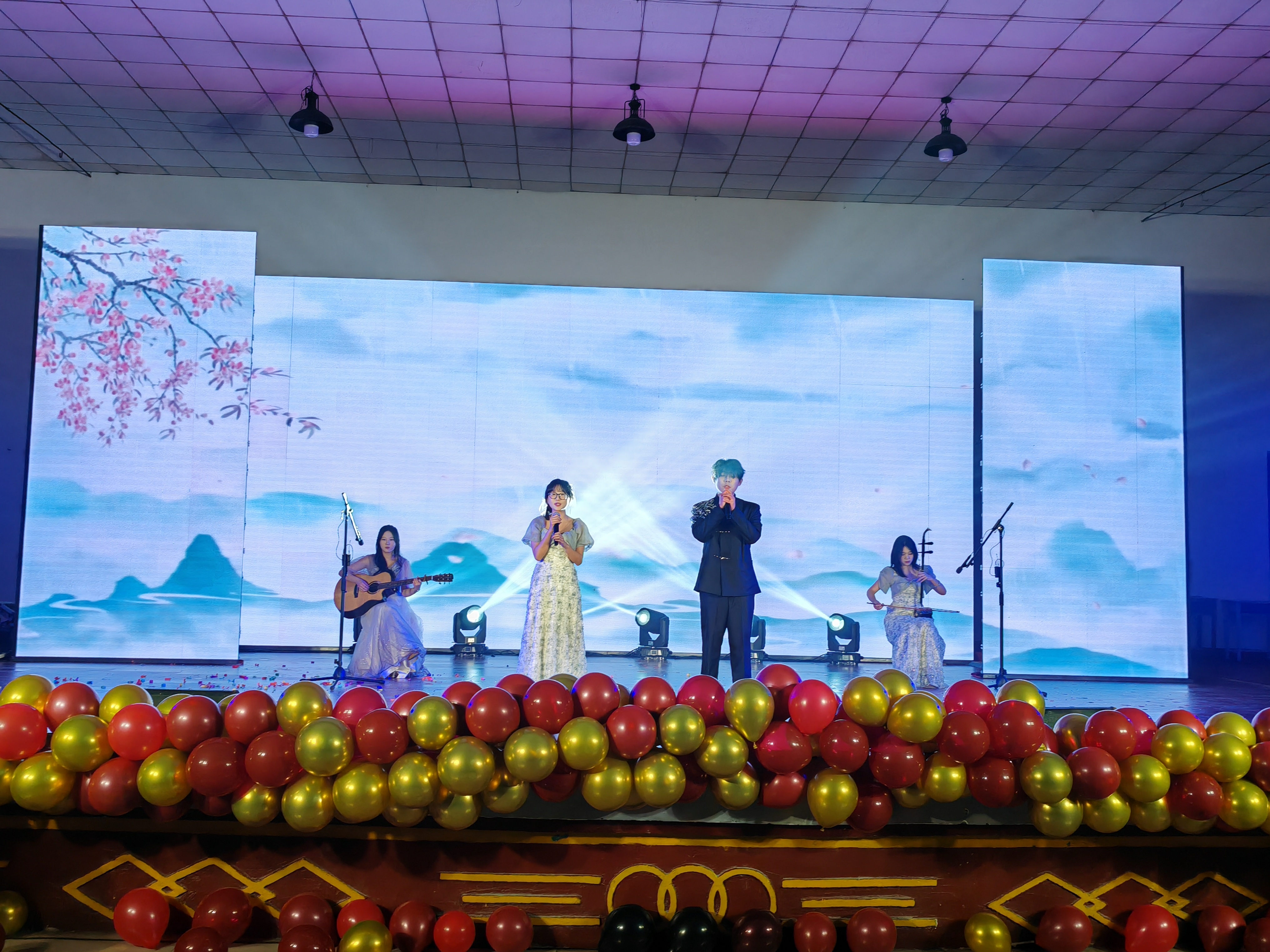 25护8班的歌唱器乐表演《兰亭序》古韵交融、余音绕梁;学生朗诵社团的《青春》铿锵有力,尽显青年担当;25护7班小品《占位置》诙谐幽默,传递勤学正能量;24美容班舞蹈《当炸雷遇上爱你》节奏明快,将氛围推向高潮。校工会朗诵社团的《亲爱的你啊》饱含师者温情,班主任代表登台演唱歌曲《上春山》,歌曲温暖悠扬,尽显育人初心,赢得全场掌声。