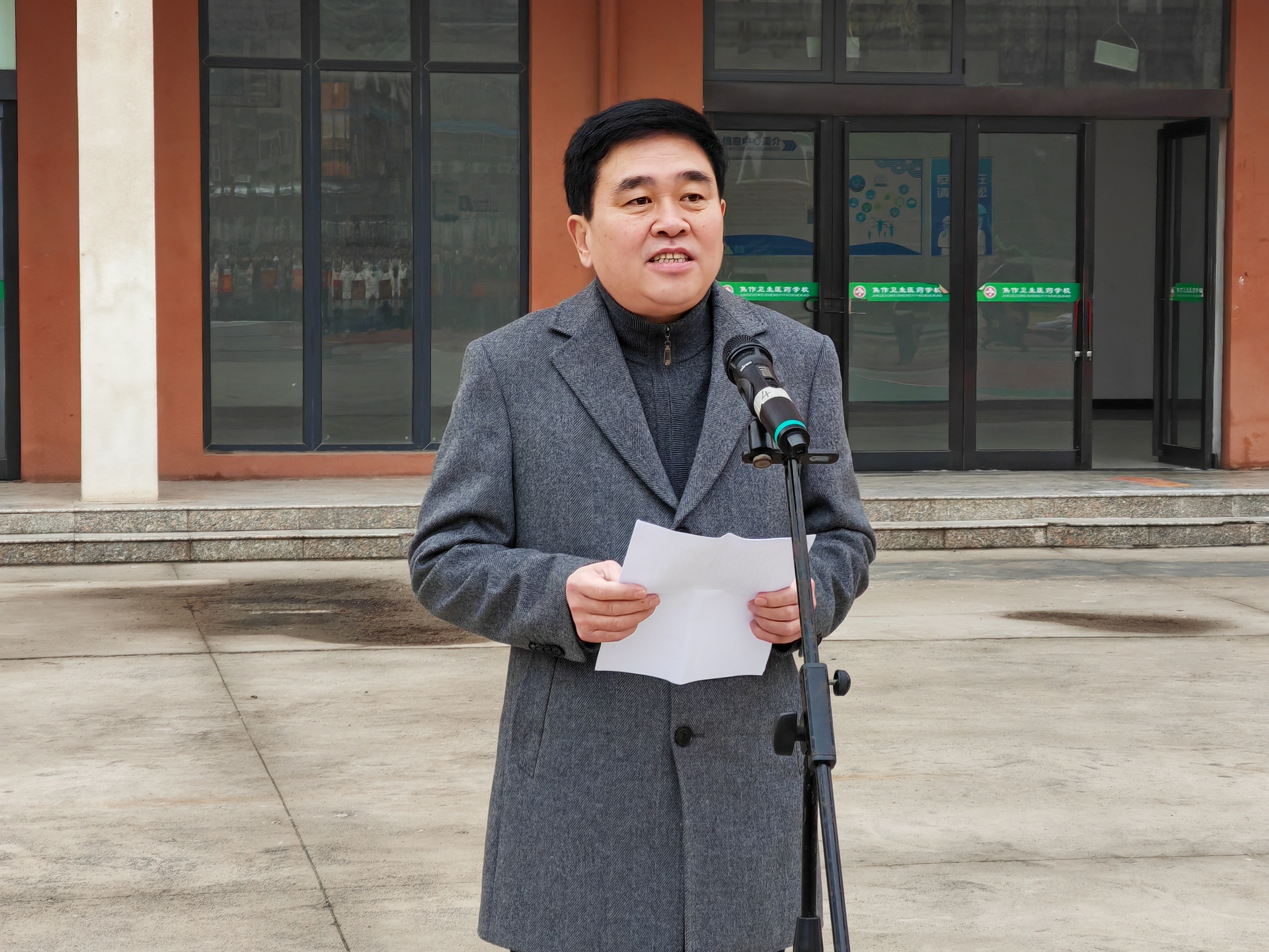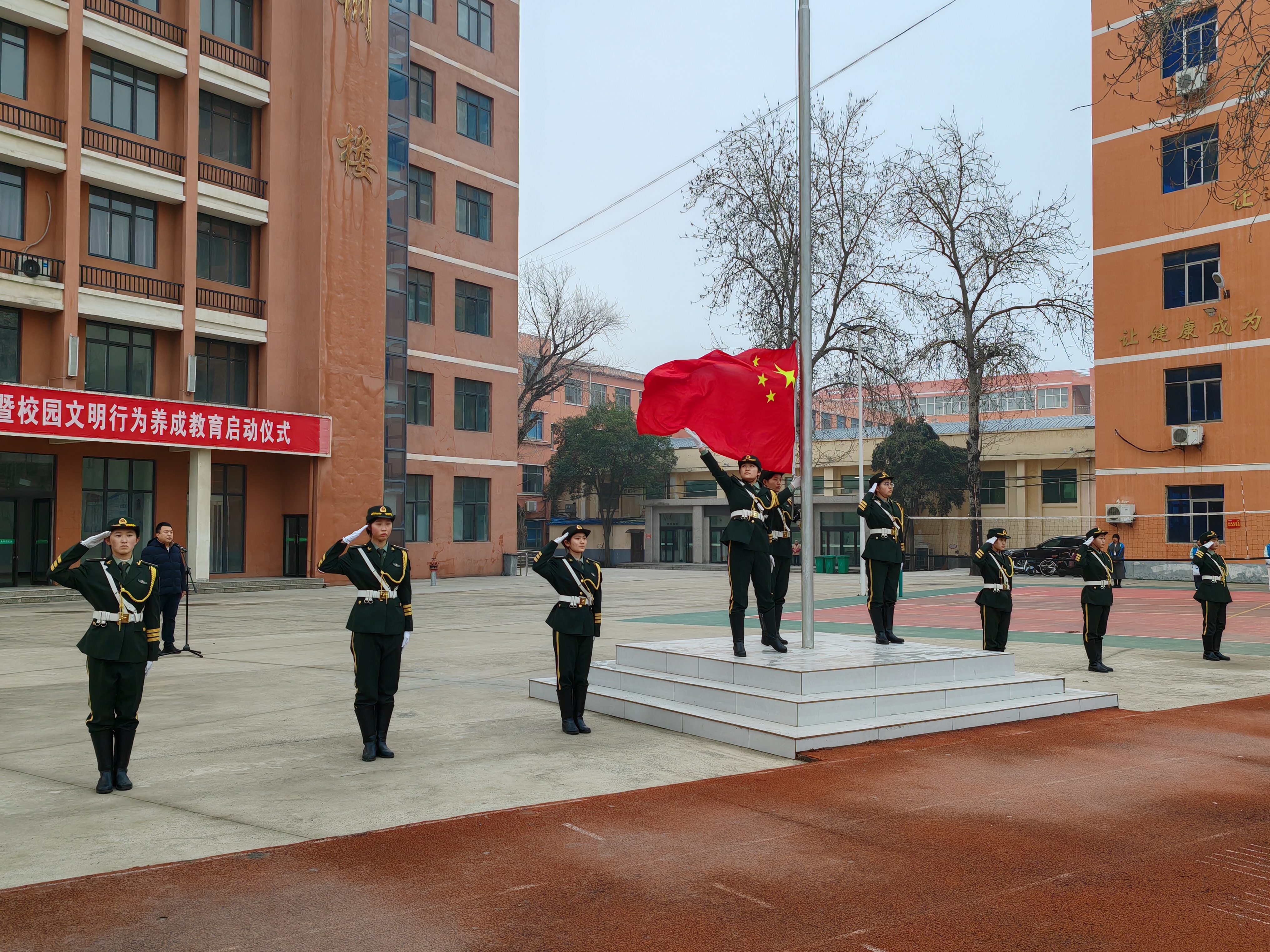 春风送暖,万物勃发;旗映晨光,逐梦前行。在这充满生机的时节,我校全体师生齐聚国旗下,举行2026年春季学期开学升旗仪式,共同开启新学期征程。仪式由学生科科长毋涛涛主持,党委副书记葛中新、副校长戴颜、王海娟及全体师生参加。