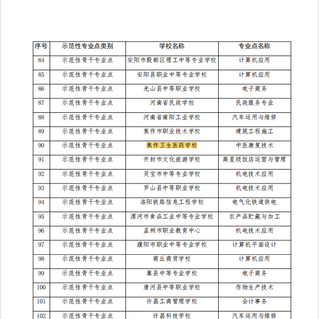 我校继护理专业2023年被确定为“省级示范性骨干专业点”,2024年7月中医康复技术专业也被河南省教育厅确定为“省级示范性骨干专业点”。
