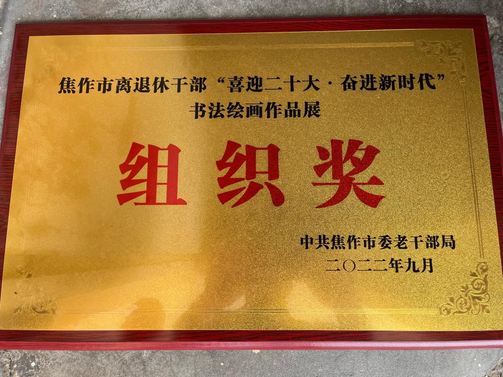 为宣传贯彻党的二十大精神,中专部组织引导离退休老干部积极传播好声音、发挥正能量、作出新贡献,大力营造团结奋进的良好氛围。按照焦作市老干部局组织的离退休干部“喜迎二十大·奋进新时代”书法绘画作品大赛的要求,学校积极推选张峰、江长顺、邢心伦三名退休干部参加比赛,最终我校获得此次活动的组织奖,张峰同志的书法作品获得优秀作品奖,并进行全市宣传展览。通过此项活动,老同志们表达了对以习近平同志为核心的党中央的衷心拥护,展示老同志坚定不移跟党走的真挚情怀,以实际行动响应党的号召,发挥才能,体现风采。(摄影:魏楠楠)